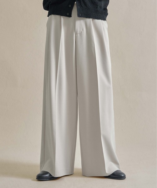 ------------------------------------------------------【epnok / エプノック】毎週(金)に新作をリリース新作情報はInstagram公式アカウントからチェック!↓【@epnok_official】------------------------------------------------------【防シワ】の機能を持った高級感のあるベーシックなワイドスラックス。◆シワが付きづらく取れやすい防シワ素材◆ストンと落ちる美しいワイドストレートシルエット◆後ろにのみウエストゴムを採用◆きれいめ見えするセンタープレス【生地】防シワ機能を備えたスラックス生地を採用。高級感のあるドレープと肉感が特徴の生地です。【デザイン】epnok定番のワイドスラックスを、より脚長に綺麗に見えるシルエットにアップデートしました。股上はやや浅め、股下はやや長めに設計することで絶妙なワイドストレートシルエットを実現しました。フルレングスながら長すぎる丈感にならないようバランスを調整。シャツやニット、オーバーサイズでも短丈でも合わせやすい万能な形に仕上げた新定番スラックスです。腰元には2タックを入れて自然な立体感を生み出し、センタープレスでクリーンな印象に仕上げました。後ろにウエストゴムを入れ込むことで、ウエストの悩みを解消し幅広い方に履いて頂ける仕様にしております。【シルエット】真っ直ぐ下に落ちるワイドストレートシルエット。股下のもたつきを抑えた、どこから見ても美しいスラックスです。【epnokの身長別推奨サイズ】〜165cm Sサイズ166〜167cm S or M168〜173cm Mサイズ174〜175cm M or L176cm〜 Lサイズ【epnok / エプノック】日常の何気ない一瞬をも引き立てる。「epnok」は“当たり前”に遊びを効かせた、ベーシックなモダンスタイルを提案します。-オフィシャルInstagramにて最新情報や限定情報を毎日更新中!-▼商品のお気に入り登録完売カラーの再入荷通知や、ラスト1点、セールの通知をお知らせ致します。▼ブランドお気に入り登録新商品や再入荷など、いち早くブランドの情報を受け取ることができます。※サイトに表示されているカラー名と実際のお届け商品に記載されているカラー名が異なる場合がございます※ご覧いただく環境により、実物と色味が異なって見える場合がございます。※同商品でも、生産の過程で1~2cmの個体差が生じる場合があります。