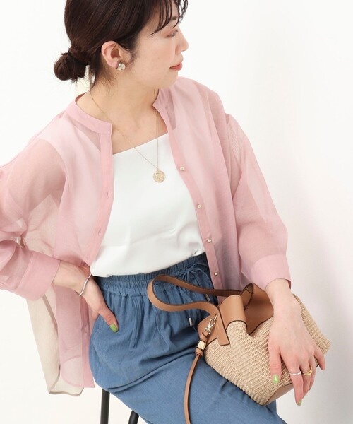 ◇26SS◇MICO COULIER涼やかに、後ろ姿も印象的な軽やかシアーシャツ◆Point・人気のシアーシャツのバイカラーバージョン・透け感×シャリ感のあるリネンライク素材が、夏にぴったりの涼感・ほんのり光るパール調ボタンが、上品さと女っぽさをプラス・後ろリボン+バイカラーデザインで”後ろ姿も主役”に・バンドカラー&7分袖で抜け感あるスタイルに・さらっと羽織れば夏の冷房&日除け対策にも◎・Tシャツに羽織るだけで一気に今っぽく・カジュアルにもきれいめにも合わせやすく着回し力◎・しわになりにくく手洗い可能でお手入れが楽なのもポイント・軽くてサラッと、デイリーにはもちろん旅行にもおすすめの一枚・こちらはシリーズでムジのご用意もございます シアーリネンライク後ろリボンシャツ(6-0818-3-01-012)----------------------------------------------------------透け感:あり裏地:なし伸縮性:なし光沢感:なし洗濯:手洗い可----------------------------------------------------------気になる商品は、お気に入り登録♥(ハートマークをタップ!)がオススメですクーポン情報や入荷情報など、お得な通知が受け取れるようになります----------------------------------------------------------●お取扱い上のご注意●末永くご愛用頂くために、アテンションタグを必ずご確認の上、着用又はお取り扱い下さい。※店頭及び屋外での撮影画像は、光の当たり具合で色味が違って見える場合があります。商品の色味は、スタジオ撮影の画像をご参照下さい。※商品画像に関しては出来る限り忠実に表示出来るよう努めておりますが、お客様がご利用のモニターの設定及び特性により、実際の商品と比較し色味に若干の誤差が生じる場合があります。※製品洗い加工の商品は、多少の歪み、シワなどが見られたり、風合いやサイズ等が1枚1枚異なります。汗や雨等で濡れた時や、摩擦により色落ちし、他の衣料を汚すことがありますので(特に濃色のもの)ご注意ください。<MICO COULIER>今の気分をノーリーズらしく取り入れたデイリーアイテムを提案します。ウエアからグッズまで幅広いラインアップ。やわらかく透明感のある着こなしで新しい自分を発見。MICO COULIERの商品につきましてはアウトレット店舗にて展開をしております。