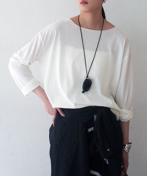 こなれ感と優しい色合いで、毎日を心地よく彩るスラブロンT ■デザイン こなれ感とやさしい色合いが魅力のスラブロンT。 ふんわりとした柔らかな生地がシンプルなデザインに奥行きをプラスします。さらりとした肌触りで着心地も良く、程よくゆとりのあるシルエットが体のラインを拾わずリラックス感のある着こなしに。デイリーにもおうち時間にも活躍する一枚です。 ■コーディネート デニムでカジュアルに、スカートでフェミニンにと、どんなボトムスにも合わせやすく着回し力抜群。 ジャケットやカーディガンを羽織ればオフィススタイルにもぴったりです。 首元は開きすぎないボートネックで上品な印象を与えてくれます。 【お気に入り登録でお得な情報をお知らせいたします 】 完売カラーの再入荷やラスト1点の通知、セールの通知を受けとることができます。 【ブランドのお気に入り登録】 新商品や再入荷、いち早くセールやクーポンなどのブランドの情報を受けとることができます。 生産の都合上、お届け時期が前後する場合がございます。 システムの都合上、店舗より入荷が遅れる場合がございます。 実際にお届けする商品と仕様やサイズが異なる場合がございます。 照明や光の当たり具合で色味が違って見える場合があります。