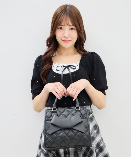 【大きなリボンがかわいすぎる♡キルティングスクエアバッグ】 ▼Design キルティング生地に大きなリボンが施された大人かわいいバッグ。 デイリーにも特別な日のお出かけにも活躍する万能アイテムです♪ マチ付きなので見た目以上の大容量◎ 幅広のマチとしっかりとした素材で、自立してくれるのも嬉しいポイント! ▼Recommend ・キルティング ・ハンドバッグ ・リボン ・フェミニン ・高見え