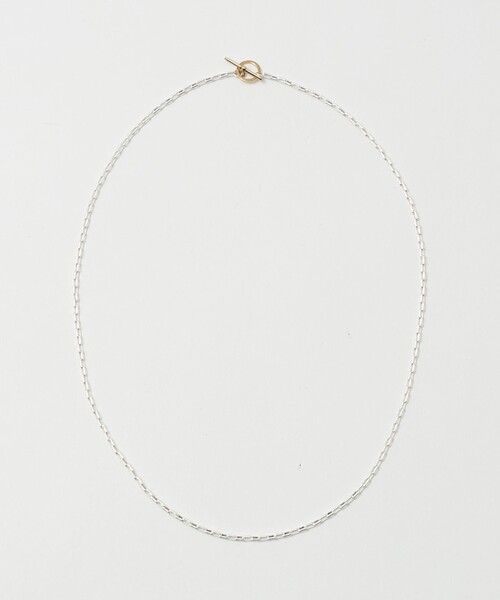 さりげなく艶めく、ツートーンネックレス■デザイン首元にさりげない華やぎを添える、真鍮製の細身ネックレス。チェーンにはシルバーカラーメッキを施し、磨きをかけたマンテル(留め具)とのコントラストで、洗練されたツートーンデザインに仕上げました。マンテルは背中側に回してミニマルに、胸元に配してペンダントトップのようにと、アレンジ次第で表情を変えてお楽しみいただけます。■素材チェーン:真鍮(シルバーカラーメッキ)マンテル:真鍮■コーディネート主張を抑えた端正な佇まいで、カジュアルからきれいめまで自然に溶け込む一本。ハイゲージニットや滑らかな質感のTシャツと合わせれば、いっそうクリーンで洗練されたムードを引き立てます。【注意事項】※商品に「取り扱い上の注意書き」、「洗濯表示」がございます場合は、使用前に必ずご確認ください。※商品画像は、光の当たり具合やパソコンなどの閲覧環境により、実際の色味と異なって見える場合がございます。あらかじめご了承ください。※商品の色味の目安は、商品単体の画像をご参照ください。店舗へお問い合わせの際は、全国のBEAUTY&YOUTH各店舗まで下記の品名/品番をお申し付けください。品名:SC BRASS COMBI NECKLACE 品番:14336000007