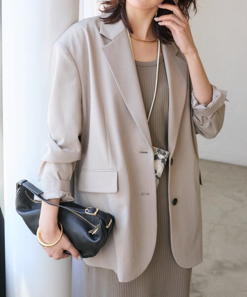 大人ハンサムにきまるオーバーショルダージャケット ●デザイン ・肩パッドでメリハリをつけたオーバーショルダーがポイントのシングルジャケット。 ・薄手の肩パッドをドロップさせ、肩幅や身幅にたっぷりとゆとりを持たせたボクシーなシルエットが特徴。 ・ラペルにもエッジを効かせたトレンドのデザインながら、気軽に羽織れる軽量な素材感とのバランスが魅力的。 ・ヒップ周りがすっぽりと隠れるミドル丈で、羽織るだけでスタイリングがこなれた印象に。オーバーサイズながら、小柄な方もバランス良く着用いただける丈感です。 ・デイリーユースにも取り入れやすく、様々なシーンで活躍する一枚。 ・背裏・袖裏付きですべりが良く、イージーケアも可能。 ●素材 表地:ポリエステル 95% ポリウレタン 5% 裏地:ポリエステル 100% ・ポリエステルスパンを梳毛引きにした、上質感を感じるウール調合繊。 ・シワになりにくく、ウォッシャブルなイージーケア素材。 ・接触冷感機能付き。 洗濯方法:手洗い可 透け感:なし 裏地:背裏・袖裏あり 伸縮性:なし 生地の厚さ:- 光沢:なし ファスナー:なし ポケット:あり -------------------------------------------------------------------------------- 【お買い物をもっと便利に楽しく♪】 『♡』をクリックでお気に入り登録 ✓「商品のお気に入り登録」で・・・ ラスト1点や再入荷の通知が届きます。登録して頂いた商品だけが対象となる、あなただけのタイムセールが開催されることも! ✓「ブランドのお気に入り登録」で・・・ 新商品や再入荷など、いち早くブランドのお得な情報を 受け取ることができますので、ご登録をおすすめします! -------------------------------------------------------------------------------- 【注意点】 ※画像の商品は光の照射や角度、お使いのモニター環境により、 実物と色味が異なる場合がございます。 ※入荷状況により、お届け予定が前後する場合があります。 ※お客様への発送が店頭販売より遅れる場合もあります。 ※追加生産商品は、一部の店舗、通販で販売中の場合がございます。 予めご了承下さい。 ----------------------------------------------------------------------