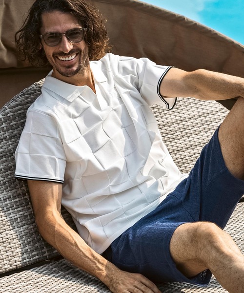 ♦【SHIFFON】Spring / Summer Collection♦ ~1PIU1UGUALE3 RELAXからブロックニットシリーズの登場~ 編み込んだような立体的なブロックデザインがクラス感を漂わせる、オリジナルテキスタイルで仕立てたスキッパーシャツ。 糸を膨らませて格子状に凹凸を出した柔らかな表面感が、上質なタオルのような優しい肌触りを形成。 伸縮性・吸汗速乾に優れ、ストレスフリーな着心地をもたらします。 袖口や裾のリブに配した細いラインデザインが、ミニマルな表情の中にアクセントをプラス。 同生地のパンツ(usk-26013)やショーツ(usk-26011)と合わせれば、リラクシングでありながら洗練されたセットアップスタイルに。 大人の夏に似合うリゾートライクな一着に仕上がりました。 【1PIU1UGUALE3 RELAX / ウノ ピゥ ウノ ウグァーレ トレ リラックス】 "極上の普段着"としてファッショニスタに愛されてやまない、1PIU1UGUALE3 RELAX "至高" "究極"への挑戦を胸にデザイナー自らが厳選し、着る者に高揚と感動を齎す"一着入魂"された作品で知られる1PIU1UGUALE3のカジュアルウェアラインである。 服の価値を知る玄人からこそ絶対的な支持を受ける、リラックスラインならではの"究極の着心地"を是非体感してほしい。 ATTENTION ※実測値のため、多少の誤差はご容赦ください。 ※商品写真はできる限り現品を再現するように心がけていますが、ご利用のモニターにより差異が生じます。 あらかじめご了承くださいませ。