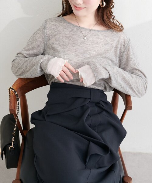 【2026SS natural couture】 リバーシブルシアーカットTOPS ■Design 表裏どちらでも着用可能なリバーシブルデザイン。 袖口と裾にあしらわれたメロウフリルが、さりげない可愛らしさをプラスします。 シアー素材ならではの透け感は、インナーとのレイヤードも楽しめるのが魅力。 タンクトップやキャミソールを合わせてヘルシーに、柄物やカラーインナーを合わせて個性的に、様々な表情をお楽しみいただけます。 袖口は、自然なドレープを生み出す長めのデザイン。くしゅっとたくし上げて、こなれ感を演出するのもおすすめです。 ■Styling カジュアルからフェミニンまで、幅広いスタイルにマッチする着回し力抜群のアイテムです。 デニムやTシャツに重ねて、トレンド感のあるカジュアルスタイルに。 ワンピースやスカートに重ねて、フェミニンなレイヤードスタイルに。 ジャケットやカーディガンのインナーとして、オフィスカジュアルにも。 シアー素材なので、アクセサリーとの相性も抜群。ネックレスやイヤリングで、華やかさをプラスするのも素敵です。 ■Fabric 滑らかな肌触りで、軽やかな着心地。 春夏シーズンに最適です。 =================== お手入れ方法:手洗い 伸縮性:あり 裏地:なし 透け感:あり 光沢感:なし 生地感 :滑らかな生地感 =================== ※着用、お取り扱いの際は、商品に付いている品質表示とアテンションタグを必ずご確認ください。 【お気に入り登録でお得な情報がいっぱい】 ・「商品のお気に入り登録」で再入荷通知や、ラスト1点の通知、セール通知をいち早く受け取ることができます。 ・「ブランドのお気に入り登録」で新商品や再入荷など、お得な情報を受け取ることができます! ※店舗の入荷時期は商品によって異なります。 店頭の在庫状況につきましては各店舗にてお問い合わせください。 ※撮影時の光の関係で、画面上の画像と実際のお色とでは若干の色差が生じる可能性がございます。 また、ご覧いただいているモニター画面や、お使いのブラウザによっても、お色の違いがございますことをあらかじめご了承くださいませ。 20260220 2026SS_natu 26SS