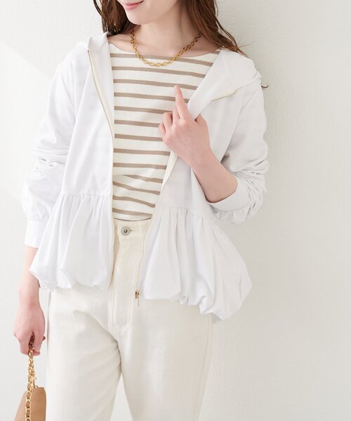 【2026SS natural couture】ペプラムラメパーカー■Design 一見カジュアルなパーカーに、フェミニンなペプラムデザインを落とし込むことで、甘すぎない、大人の可愛らしさを表現しました。裾に向かってふわりと広がるペプラムは、気になるウエスト周りをさりげなくカバーしつつ、女性らしいシルエットを演出。カジュアルなデニムやパンツスタイルにはもちろん、スカートやワンピースに合わせれば、程よくカジュアルダウンした、こなれ感のあるスタイリングが完成します。フロントジップを少し開けて、インナーをチラ見せするのもおすすめ。抜け感をプラスして、より洗練された印象に。フード付きのデザインは、小顔効果も期待できる優れもの。顔周りを華やかに演出し、全体のバランスを整えてくれます。ちょっとしたお出かけから、おうちでのリラックスタイムまで、幅広いシーンで活躍してくれること間違いなしです。■Stylingデニムやスキニーパンツと合わせて、カジュアルな着こなしはもちろん、フレアスカートやワンピースと合わせて、フェミニンなスタイルにもマッチします。足元はスニーカーでカジュアルに、ブーツで大人っぽく、合わせるアイテムによって様々な表情を楽しめます。アクセサリーをプラスすれば、さらに華やかな印象に。シンプルなデザインなので、ネックレスやピアスなどのアクセサリーが引き立ちます。オフの日には、Tシャツやタンクトップの上に合わせて、リラックスしたスタイルを楽しめます。■Fabric 動きやすく、ストレスフリーな着心地です。繊細に散りばめられたラメは角度によって上品にきらめき、華やかな印象を与えてくれます。派手すぎない、さりげないラメ使いなので、普段使いにも抵抗なく取り入れられます。※サイズ補足ウエスト:96㎝重量:約510g===================お手入れ方法:マシンウォッシャブルポケット:なし伸縮性:あり裏地:あり透け感:光沢感:あり生地感 :さらりとした生地感===================※着用、お取り扱いの際は、商品に付いている品質表示とアテンションタグを必ずご確認ください。【お気に入り登録でお得な情報がいっぱい】・「商品のお気に入り登録」で再入荷通知や、ラスト1点の通知、セール通知をいち早く受け取ることができます。・「ブランドのお気に入り登録」で新商品や再入荷など、お得な情報を受け取ることができます!※店舗の入荷時期は商品によって異なります。店頭の在庫状況につきましては各店舗にてお問い合わせください。※撮影時の光の関係で、画面上の画像と実際のお色とでは若干の色差が生じる可能性がございます。また、ご覧いただいているモニター画面や、お使いのブラウザによっても、お色の違いがございますことをあらかじめご了承くださいませ。202602202026SS_natu26SS