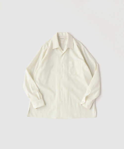 メーカー品番 A26A06SH02C襟から前立ての見返しまでを一体で仕立てた、襟元のデザインが特徴の「Italian Open Collar Shirt」。通常のシャツに見られる襟の切り替えが正面に現れないため、襟元に美しいロールが生まれます。開きすぎない上品なVゾーンが、程よい抜け感と大人らしい表情を演出。身頃や袖幅には適度なゆとりを持たせ、素材が描く美しいドレープを活かすことで、リラックス感がありながらも洗練された佇まいに仕上げています。平織りでありながら、深い光沢を備えた非常にラグジュアリーな表情のシャツ。イタリアンカラー特有の優雅な襟周りが、大人のカジュアルスタイルを一段上へと引き上げてくれます。ウールならではの機能性により、真夏まで涼しく快適に着用可能。素材の良さと仕立ての美しさが際立ち、1枚でスタイリングの主役となる上質なウールシャツです。 【MARKAWARE / マーカウェア】2003年に設立された日本のメンズブランド。”大人のための、洗練されたハイエンドガーメントを提案”という位置づけで、日本製のメンズウエアを発信しています。素材選びや、縫製、加工など、洋服作りの全アプローチを国内で行い、古き良き時代から培われてきた職人的ディテールワークに独自のモダニズムを盛り込んだ服作りが特徴。美しいカッティング、装飾の少ないシンプルなデザインが人気を博しています。【ご注意】※照明の関係により、実際よりも色味が違って見える場合があります。またパソコン・スマートフォンなどの環境により、若干製品と画像のカラーが異なる場合もございます。※商品の色味は、商品アップ画像をご参照ください。本体:手洗い可能