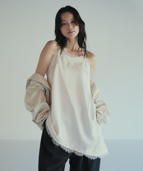レイヤードスタイルを楽しめる、トレンドのサテンキャミワンピース 【design】 上品な光沢感と繊細なレースディテールが女性らしさを引き立てる、サテン素材のキャミソール。 なめらかな落ち感のあるサテン素材を使用し、動くたびに柔らかく揺れる美しいシルエットを演出。 コーディネートに取り入れるだけで、トレンド感とスタイリングに華やかさをプラスしてくれる一枚です。 胸元と裾には繊細なレースをあしらい、甘さを抑えた大人のフェミニンな印象に。 アシメデザインが大人らしい印象に導き、カジュアルからきれいめまで幅広いスタイルに自然と馴染みます。 ややゆとりのあるシルエットで身体のラインを拾いにくく、リラックス感のある着心地。 華奢なストラップが抜け感を演出し、女性らしい印象をより引き立てます。 【styling】 Tシャツやシアートップス、シャツとのレイヤードスタイルはもちろん、ジャケットのインナーとしても活躍。 ボトムを選ばず、デニムやスラックス、スカートなど様々なコーディネートに取り入れやすい万能アイテムです。 ロングシーズン着用でき、ワードローブに一枚あると着こなしの幅がぐっと広がる主役級キャミソールです。 ------------ 裏地 なし 透け感 なし(IVのみあり) 伸縮性 なし 光沢 あり ポケット なし 洗濯方法 手洗い可 ------------ 【code item】 ▼商品コードを長押しコピー→検索 着用アイテム:【hellam×HOTARU】合繊ウエストタックシャツ 商品コード:103818277 着用アイテム:ポロニットカーディガン 商品コード:103690732 着用アイテム:TRツイルウエストタックパンツ 商品コード:103667832 着用アイテム:ワイドタックパンツ 商品コード:91749193 着用アイテム:合繊オーバーサイズシャツ 商品コード:103353787 ※お使いのモニター設定、お部屋の照明等により 実際の商品と色味が異なる場合がございます。 物撮り写真はできる限り実物の色に近づけるようにしておりますので、 色に関しては商品の物撮り写真をご参考ください。 ▼もっとお買い物を楽しんで頂く為に▼ 〈商品のお気に入り登録〉 お気に入りの登録をして頂きますと セールの通知・ラスト1点になった時の通知や、再入荷通知を受けることができます。 〈ブランドのお気に入り登録〉 新商品の発売や再入荷、タイムセールやクーポン発行のお知らせなど hellamがお届けするお得な情報を受け取ることができます。