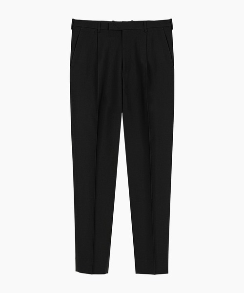 オリジナルのウールギャバ素材を使用したスリムスラックス。タテ糸にスーパー130s糸、ヨコ糸にレギュラー糸を使用することで、上品でしなやかな風合いを持ち、仕立て栄えの良い素材に仕上げています。NANO BLACKはナノレベルの染色でより深い黒を表現し、撥水性と防汚性を備えています。深めのワンタック仕様で、ヒップから膝上にかけてほどよくゆとりを持たせています。シャープなラインでテーパードさせ、膝下のスリムフィットに繋がるシルエットです。ウエストはアジャスターで左右各3段階のサイズ調整ができます。