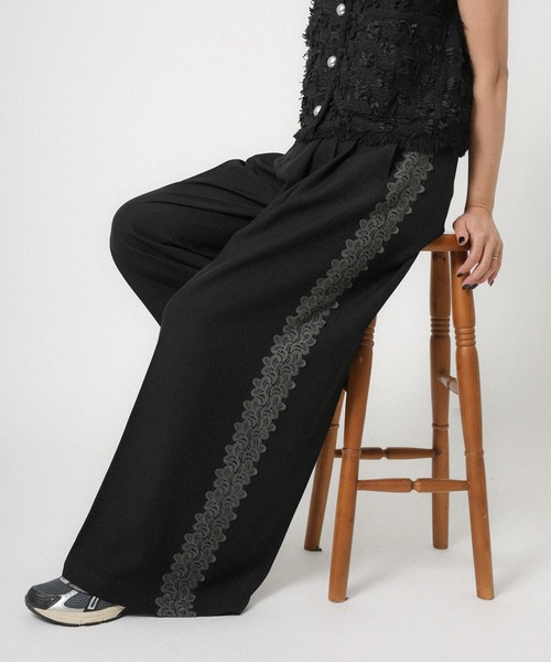 【Floran ストレッチサイドレースパンツ】\横顔までぬかりない/大人のワイドパンツ■Styling程よくゆとりをもたせたワイドシルエットにサイドに施した同色レース切替がポイントのワイドパンツが登場しました。甘さを主張しすぎない配色だからマニッシュな印象をキープしたまま女性らしさをプラスできます。レースが縦ラインを強調し自然なスタイルアップ効果も◎さらに、ストレッチ入り素材とバックウエストゴム仕様で長時間の着用もストレスフリー。オフィスにも、セレモニーにも、普段使いにも。きちんと感と着心地を両立した一本です。スタイリングは同素材の※FW-0036 ストレッチ袖レースダブルジャケットとセットアップがオススメ。統一感あるスタイリングになり、セレモニー、お仕事シーンにもマッチします。コンパクトなニットで合わせればワイドシルエットが引き立ちバランスの取れた着こなしに。ブラウスを合わせていただくと、フェミニンでより上品な印象になります。ロゴTやスウェットでカジュアルダウンして、抜け感ミックスもオススメです。きれいに見せたい日も、楽に過ごしたい日も。どちらも叶える、大人の為のサイドレースパンツです。■Detailサイドに同色のレースデザインで縦ラインが強調され脚長効果◎フロントタック入りで立体的に腰回りをカバーしてくれます。程良いワイドシルエットで、太もも、ヒップラインが安心。バックウエストゴム仕様なので楽な穿き心地。ポケット付きで実用性も兼ね備えてます。体型カバーしながらすっきり見せる設計にこだわりました。■Materialストレッチ性があり、動きやすくストレスフリー。シワになりにくい。ミックス調で奥行のある素材感です。ロングシーズン対応◎程よい肉感があり、透け感も気になりにくい素材です。▽生地感透け感:あり 〇〇〇〇● なし生地の厚さ:厚い 〇〇●〇〇 薄い裏地:なし伸縮性:あり※この素材は摩擦(特に湿った状態での摩擦)や、汗や雨などでぬれた時は他の衣料や下着・バッグなどに色が移る事がありますので、ご注意下さい。※商品の梱包には細心の注意を払っていますが、通販の特性上、到着時に畳みシワがついている可能性がございます。予めご了承ください。 ※詳しいお手入れ方法は商品タグをご参照ください。【Information】◆《お気に入り登録》がオススメ◆・「商品のお気に入り登録」で再入荷通知や、ラストの通知、セール通知も受け取ることが出来ます。・「ブランドのお気に入り登録」で新商品や再入荷など、お得な情報を受け取ることが出来ます※撮影時のライティング、ご覧になっているモニター・PC環境により、実際の商品と色味が異なって見える場合がございます。予めご了承をお願い致します。