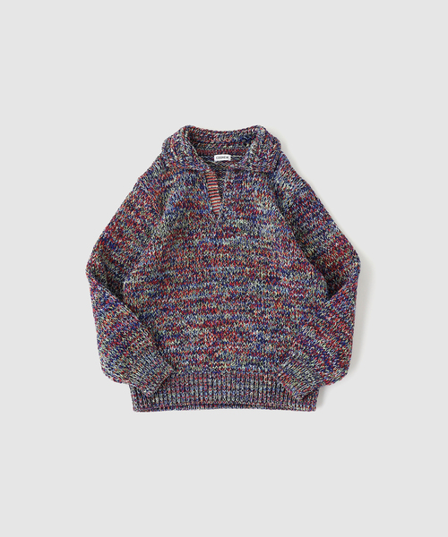 COOHEM COLORMIX BIG TENJIKU P/O メーカー品番:13-254-032 ネイビー(040):NAVY MULTI レッド(060):RED MULTI 細番手の糸を何色も引き揃え、新しいカラーを生み出すカラーミックスニット。 編み目が拡大されることでインパクトが増した天竺編み。 襟元をスキッパーデザインに仕上げることで、ローゲージセーターでもすっきりした印象です。 ※色の現れ方には個体差が生じます。 ・ソフトで弾力性に富んだオーストラリア産ラムウールを使用 ・適度にゆとりのあるボックスシルエット ・ドライクリーニング 【COOHEM / コーヘン】 COOHEN(コーヘン)は「交編(こうへん)」に由来する造語で、山形県の老舗ニットメーカー、米富繊株式会社のファクトリーブランドとして、2010年AWよりスタート。「交編」とは形状の異なる複数の素材を組み合わせて編みたて、まったく新しい素材を生み出す技術を指しています。 高度な解析を要するプログラミングと色や素材を組み合わせるクリエイションの融合、それぞれの職人が融合して挑むモノづくりカルチャーを世界に発信している。 《画像についてのご注意》 ※照明の関係により、実際よりも色味が違って見える場合があります。 またパソコン・スマートフォンなどの環境により、若干製品と画像のカラーが異なる場合もございます。 ※商品の色味は、商品アップ画像をご参照ください。 《商品のお気に入り登録について》 「カートに入れる」または「予約する」右側のハートマークを押していただくと、 再入荷、残り1点、セールなどの通知を受け取ることが出来ます。 本体:ドライクリーニング