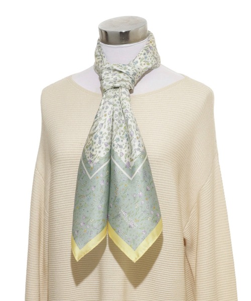 【日本製 大判小花柄スカーフ】 大判サイズ(約88×88cm)でアレンジ自在なシルクスカーフ。 落ち着いた小花柄に縁取りデザインを効かせた、使いやすい一枚です。 シルク100%のなめらかな肌触りと上品な光沢感が特徴。 首元に巻くだけでコーデのアクセントになり、肩掛けやバッグアレンジにも活躍します。 大きめサイズなので、首元の日差し対策としてもさっと使える実用性のあるアイテムです。 ■POINT ・大判サイズ(約88×88cm)でアレンジしやすい ・シルク100%のなめらかな質感 ・上品な光沢感のシルクツイル素材 ・小花柄×フレームデザイン ・首元のUV対策にも使えるサイズ感 【サイズ】 全長:約88cm 【素材】 絹100% 【原産国】 日本製 【マッキントッシュ フィロソフィー (MACKINTOSH PHILOSOPHY)】 英国を代表する老舗ブランド、マッキントッシュ。 そのセカンドラインとして誕生したマッキントッシュ フィロソフィーは、マッキントッシュのモノづくりの精神とクラシックで時代性のあるスタイルを受け継いだトータルコレクションです。伝統的なディテールに、モダンなテイストを加え、アレンジしているのが特徴です。 ※商品が届きましたら、ご使用前に必ず状態をご確認ください。