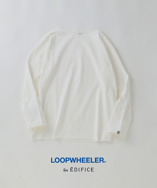 LOOPWHEELER for LOWERCASE過去に人気のあったボートネックモデルが数量限定で復活。世界中が認めたトップクオリティーを誇る LOOPWHEELER と、LOWERCASE主宰・梶原氏によるスペシャルプロダクトが EDIFICE から数量限定で販売開始いたします。EDIFICEらしさを感じさせるアイテムを、トップクリエーターとの協業により完成させました。ジャパンメイドのスウェットシャツの代名詞でもあるLOOPWHEELER。日本に現存する吊り編み機で編まれた生地のみを使用し、「世界一、正統なスウェットシャツ」を追求し続けています。世界中のファッション関係者や有名ミュージシャンから支持を集め、数々のコラボレーションを実現してきた日本を代表するトッププロダクトブランドです。ネックはややクルーネックに近い設計で、ボートネックにありがちな首元の抜けすぎを抑えたバランスに。全体のサイズ感はBIG TEEのようなルーズシルエットで、たっぷりとした身頃と袖の太さが特徴です。通常の長袖TEEと比べ、全体的にゆったりとした設計になっています。袖口を捲し上げたりロールアップすることで、着こなしにニュアンスをプラス。シャツをレイヤードできるサイズ感のため、ニットやスウェット感覚でのスタイリングもおすすめです。カラーは、定番のホワイト、ネイビーに加え、新色のナチュラルをラインナップ。クリーンなホワイト、馴染みの良いネイビー、柔らかな印象のナチュラルと、着方次第でさまざまな表情をお楽しみいただけます。今の季節はインナーとして、また一枚着としても活躍する汎用性の高いデザイン。LOOPWHEELERインラインにはないサイズ感やディテールも魅力です。本商品はジェンダーレスサイズのため、女性の方にもご着用いただけます。生地はカネキチ工業にて、ゆっくりと空気を含ませながら吊り編みされた天竺素材を使用。肌馴染みが良く、洗濯を重ねることで風合いの経年変化もお楽しみいただけます。もっちりとした独特の素材感は、他にはない特別な着心地を実現。ループウィラー定番の素材です。※LOOPWHEELER定番のヘヴィウェイト天竺を使用しているため、洗濯環境により初回洗濯で着丈が平均約1cm縮む場合がございます。※今回の吊り編み天竺は柔らかさの中にコシがあるため、着用によって大きく伸びることはございません。【LOOPWHEELER / ループウィラー】「世界一、正統なスウェットシャツ」を製造、販売すべく鈴木諭氏が吊り編み機で編まれた生地しか使わないスウェットシャツメーカーとして1999年に設立。長年アパレルOEMの仕事に携わり築き上げた人脈と信頼、確かな技術力を持つ生産工場を背景に、メイドイン・ジャパンのスウェットウェアを生産。吊り編みものの新しい世界観を創り続けている。【ご注意】※商品の色味につきまして、お客様のお使いのPCのモニター環境により実際のカラーと画像の色味が違って見える場合が御座います。予めご了承の上、ご注文下さい。※店頭・外での撮影画像は光の加減で、実際の商品より明るく見える場合が御座います。商品の色味はスタジオ撮影の画像を参考にして下さい。
