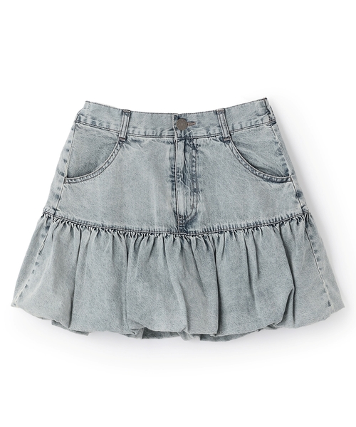 立体感のあるバルーンシルエットが目を引くスカートです。デニム素材ならではのカジュアルさがありつつ、細かなギャザーで女の子らしさをプラス。ウエストはアジャスターゴム仕様なので、お好みのサイズ感に調整できます。デイリーコーデはもちろん、ストリートなテイストのスタイリングにもぴったりな一枚です。【おすすめの着用時期は春夏シーズン】【透け感】透けない【生地の厚さ】普通【伸縮性】なし【裏地】あり【ポケット】あり【アジャスター】あり
