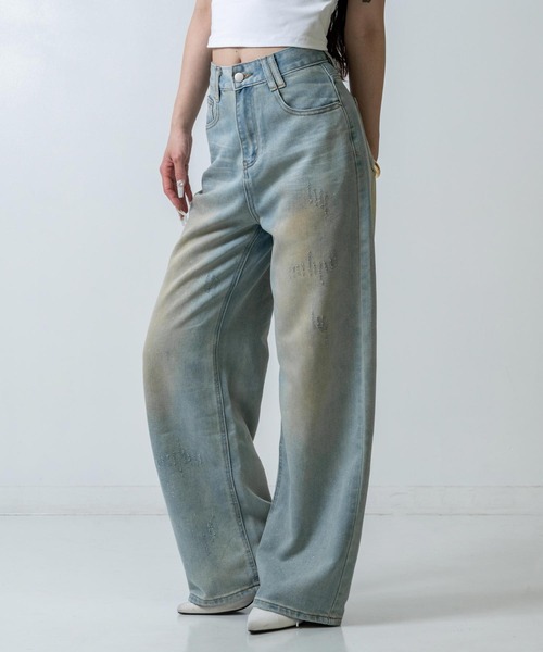 静かな輝きを纏う、余裕のあるデニム●ラフなデニムに、さりげないきらめきを添えて。●計算されたダメージと光のニュアンスが、視線を引き寄せます。●いつものスタイルを一段引き上げる、存在感のある一本。♦detail全体に散りばめられた繊細なラメ加工が動くたびに上品に輝き、ハードになりすぎない絶妙なバランスを演出します。程よくゆとりのあるストレートシルエットが脚のラインを自然に整え、ウォッシュ加工による立体感が奥行きのある表情をプラス。ダメージディテールはやりすぎない配置で、抜け感と洗練を両立させています。デニム特有のこなれた風合いと華やかさが共存する一本です。♦stylingモードにまとめたい→コンパクトなシアートップスとヒールでシャープに引き締めてストリート感を楽しみたい→クロップド丈のスウェットや厚底スニーカーでバランスよくきれいめカジュアルに仕上げたい→ジャケットやタイトニットを合わせて上品な抜け感を演出♦コーデにオススメパッド付 ぴたっと クロップド Tシャツ(153-6043)リブニットボタンオフショルダートップス(153-5989)-----------伸縮性・・・若干あり透け感・・・なし光沢感・・・ラメ加工あり生地の厚さ・・・ふつうポケット・・・あり裏地・・・なし-----------<サイズ>SM※ラメ加工が施されている為、ラメが落ちる場合がございます。お取扱いにご注意ください。 ※本製品は特殊な加工を施しているため、一点一点風合いが異なります。特に、再生産・再入荷の時期により、染めムラや色落ち感など色合い、サイズ感に若干の個体差が生じる場合がございます。あらかじめご了承ください。※この商品は非常に色落ち、色移りしますので十分ご注意ください。※商品のお取扱いに関しましては、商品に付属のアテンションカード、洗濯ネームをご覧ください。※モデル着用画像は光の当たり具合で色味が違って見える場合がございます。※商品の色味の目安は、商品単体の画像をご参照ください。【お買いものをお楽しみいただく為に!】▼商品のお気に入り登録完売カラーの再入荷通知や、ラスト1点の通知、セールの通知も受け取ることができます。▼ブランドのお気に入り登録新商品や再入荷など、いち早くブランドのお得な情報を受け取ることができます。