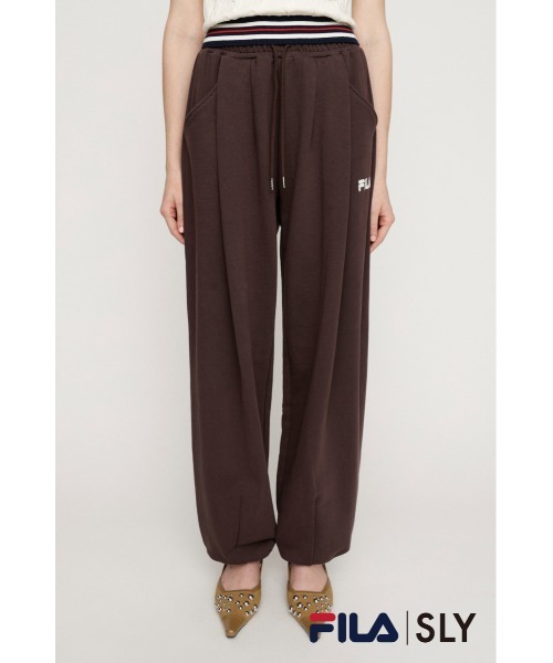 ■POINT FILAとのコラボレーション企画が登場。 深めのタックで立体感をプラスした、ワイドなバレルシルエットのスウェットパンツ。 左ポケット下にはFILAのロゴをアップリケで施し、コラボレーションならではのアクセントをプラス。 裾にはドローコードを付け、絞り具合によってボリュームのある着こなしから、すっきりとした印象まで調整可能です。 ■DETAIL カラーは、SLYオリジナルで作成したストライプ柄と、着回し力の高いベーシックなブラウンの2色展開。 ゆったりとしたシルエットに加え、ウエストはゴム仕様のため、ストレスフリーな穿き心地を実現しています。 ■STYLING 同シリーズの ・FILA × SLY RUGGER SHIRT(030JSZ01-0151) とのセットアップ風スタイリングがおすすめ。 カジュアルなアイテムながら、あえてガーリーなトップスと合わせたミックススタイルも今季らしく、こなれた印象に仕上がります。 ■FABRIC/MATERIAL 程良い厚さの裏毛素材を使用しています。 ■透け感:なし ■光沢感:なし ■伸縮性:なし ■裏 地:なし ※お取り扱い上のご注意 ・本品は素材の特性上色落ちします。 ・洗濯、クリーニング、着用(使用)時に他の衣類や雑貨、家具類に色移りする事があります。 ・特に汗や雨等で湿った状態では、色落ちが顕著になります。 ・白、淡色との組み合わせは避け、お取り扱いには十分ご注意下さい。 [注意事項] ※画像の商品はサンプルです。実際の商品と仕様、加工が若干異なる場合があります。 ※画像の商品は光の照射や角度、お使いのモニター環境により、実物と色味が異なる場合がございます。 ※着用、お取り扱いの際は、アテンションタグをご確認ください。 ※一部予約商品につきましては生産上の都合によりお届け予定日や店頭発売と前後する場合もございます。 ※追加生産商品は、一部の店舗、通販で販売中の場合がございます。予めご了承下さい。 ※こちらの商品はSLY独自の採寸方法となっています。本サイトのサイズガイドと採寸方法が異なる場合がありますのでご了承ください。 【SLY/スライ】 「Casual」「Girly」「Mode」をベースに発信する、ディテールへのこだわりが詰まった、どこか必ず女性らしさを感じるアーバンスタイル。 さまざまなエッセンスをミックスした、時代の空気を体現するコレクションを展開。 ▼商品のお気に入り登録 お気に入りアイテムの値下げ・再入荷・在庫1点などの通知を受け取ることができます。 ▼ブランドのお気に入り 登録新商品や再入荷、セール、クーポン配布などお得な情報を受け取ることができます。