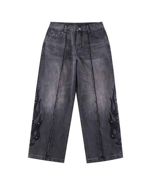 デニムパンツ|Fire Tribal Leather Patch Baggy Denim|SUPPLIER