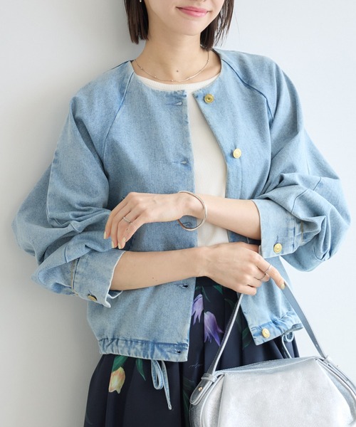 【KATHARINE ROSSセレクト】裾を絞ればシルエットが変わる、遊び心あるドロストデニムジャケット [素材] ・綿をメインにした本格的なデニムの風合いながら、ポリウレタンを1%配合することで、程よいストレッチ性を持たせました。 ・デニム特有のごわつきを軽減し、肩周りの動きもスムーズ。 [デザイン] ・首元をすっきりと見せるクルーネック仕様にすることで、デニム特有の無骨さを抑え、女性らしく上品な印象に。 ・袖部分に施されたタックデザインが、ふんわりと愛らしいボリューム袖を形成。 ・華やかなゴールドボタンのアクセサリーのような輝きが、いつものデニムスタイルをドラマティックに格上げ。 ・裾部分にはドロストがあり、そのままストンと着ればボックスシルエットに、ギュッと絞れば丸みのあるバルーンシルエットに。 ・視線を上に引き上げるショート丈設計で、ロングスカートやワイドパンツとも相性抜群。 [スタイリング] ・フェミニンなワンピースの上にさらりと羽織れば、程よく力の抜けた上品な装いに。 ・ボーダーのトップスをインしてワイドパンツと合わせれば、大人の余裕漂うクリーンな春スタイルを楽しめます。 ■光沢感:なし ■透け感:なし ■伸縮性:ややあり ■生地の厚さ:普通 ※照明や光の当たり具合で色味が違って見える場合があります。 ※システムの都合上、店舗より入荷が遅れる場合がございます。 【お買い物をよりお楽しみいただくために】 ・商品のお気に入り登録をおすすめします! ♡マーククリックで登録できます。 完売カラーの再入荷や、ラスト1点になったときの通知、 セールの際に通知などお得な情報を受けることができます。 ・ブランドのお気に入り登録もご一緒にお願いいたします! 新商品や再入荷、などいち早くブランドの最新情報をお届けします。