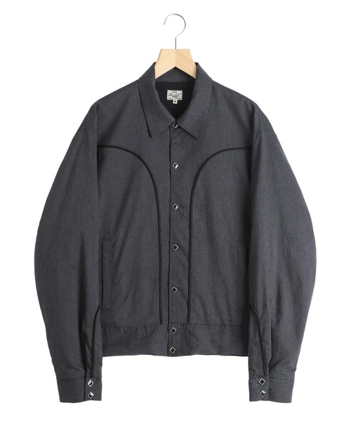 シルク混ネルの上質ヴィンテージ感、輝くパイピングが男らしさを引き立てる 【デザイン】 ・1950年代ヴィンテージウエスタンジャケットをオマージュした2ポケット仕様(剣先型フラップ&チェストポケット) ・フロントヨーク→ショルダー→背面ヨークにかけたコントラストパイピングでメリハリを演出 ・フロントはスナップボタン開閉、裾と袖口はラウンドカッティングで立体的なシルエットに ・裾には平ゴムが使用され、ウエスト周りがスッキリに ・こちらのアイテムは「26A-GL42617 / COTTON / SILK NEL 2TUCK WIDE EASY PANTS」と同生地になっており、セットアップでの着用も可能 【素材】 ・先染め杢コットン糸×シルク杢糸の混紡ネル生地を高密度に織り上げ ・コットンの優れた吸水性・通気性と、シルクのしなやかな光沢・ソフトタッチを両立 ・杢糸特有の深みある表情と、適度な起毛感で温かみのある着心地 【シルエット・サイズ】 ・レギュラーフィットをベースに、肩まわり・身幅にほどよいゆとりを持たせつつウエストは引き締め 【商品画像について】 ・閲覧環境や撮影環境による光の違いにより、掲載画像は実際の色と異なって見える場合がございます。(商品の色調は白背景の商品単体画像をご参照ください。)