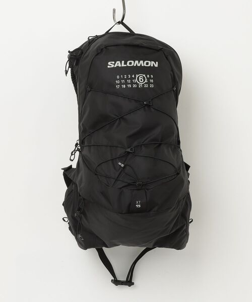MM6 x SalomonコラボレーションのXT 15 バックパック【デザイン】・バイクヘルメット用キャリングシステムが付いた15Lボディのバックパック・ソフトなファブリックを使用し、抜群の安定性を備えた XT 15・トレッキングからサイクリング、ツアーまで激しいアクティビティに最適・ポケット付きラージヒップベルト【素材】・ 軽量、かつ高いサポート性と通気性のナイロン生地・伸縮性のあるソフトなファブリックと背中の通気性が快適さを確保し、調整可能なハーネスシステムとウエストバンドによるサポートで最適なフィット感を実現【シルエット・サイズ】・15Lサイズのボディ・500mlフラスコ対応フロントポケットx2・ポケットx7