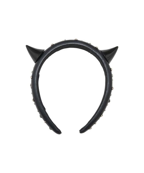 ツノモチーフつきのワイドカチューシャ。 ボディはキラキラのストーンや小粒のスタッズをあしらい、パワフルさと可愛らしさを兼ね備えたイメージのデザイン。 ※画像の商品はサンプルです。実際の商品と仕様、加工、サイズ、素材が若干異なる場合がございます。 ──────────────────── HYSTERIC GLAMOUR(ヒステリックグラマー) 店舗へお問合せの際は、下記品番をお申し付け下さい。 【品番:01261QA06】 ────────────────────