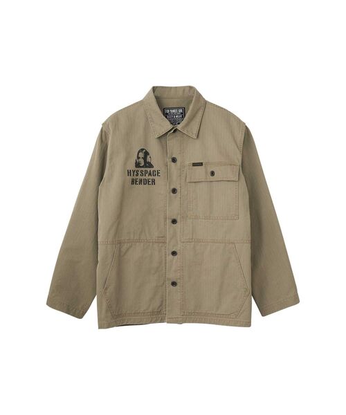 アメリカ海兵隊のM-44ヘリンボーンツイルユーティリティジャケットをベースに、シャツジャケットへとコンバート。羽織りとして使いやすく、程よくゆとりのあるシルエットにアップデートしている。さらにオリジナルにはないアウトポケットを追加し、収納力と機能性をプラス。ヴィンテージの洗いざらし感や乾いたフェード感は、STONE BIO加工と独自の仕上げ方法で再現。グラフィックは、クラシックSF映画のエフェクトを得意とする HYSTERIC サウンドクリエーターをイメージしたデザインを配した。生地には、1940年代のアメリカ海兵隊ユーティリティウエアに使われていたヘリンボンを再現した素材を使用。アメリカ、ブラジル、オーストラリア産の綿を混ぜた糸を使用し、撚りを調整することで、耐久性を保ちつつ美しい綾立ちの表情を持たせている。‥‥‥‥‥‥‥‥‥‥‥‥透け感:なし伸縮性:なし裏地 :なし‥‥‥‥‥‥‥‥‥‥‥‥※画像の商品はサンプルです。実際の商品と仕様、加工、サイズ、素材が若干異なる場合がございます。────────────────────HYSTERIC GLAMOUR(ヒステリックグラマー)店舗へお問合せの際は、下記品番をお申し付け下さい。【品番:02261AB05】────────────────────