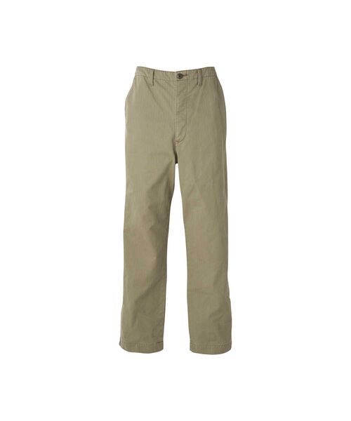 ルーズシルエットのトラウザーパンツ。左後身頃には、切り替えを活かしたファスナーポケットとパッチポケットを配置したアシンメトリーなデザインで、シンプルながら目を引く仕上がり。ヴィンテージの洗いざらし感や乾いたフェード感は、STONE BIO加工と独自の仕上げ方法で再現。グラフィックは、クラシックSF映画のエフェクトを得意とする HYSTERIC サウンドクリエーターをイメージしたデザインを配した。生地には、1940年代のアメリカ海兵隊ユーティリティウエアに使われていたヘリンボンを再現した素材を使用。アメリカ、ブラジル、オーストラリア産の綿を混ぜた糸を使用し、撚りを調整することで、耐久性を保ちつつ美しい綾立ちの表情を持たせている。‥‥‥‥‥‥‥‥‥‥‥‥透け感:なし伸縮性:なし裏地 :なし‥‥‥‥‥‥‥‥‥‥‥‥※画像の商品はサンプルです。実際の商品と仕様、加工、サイズ、素材が若干異なる場合がございます。────────────────────HYSTERIC GLAMOUR(ヒステリックグラマー)店舗へお問合せの際は、下記品番をお申し付け下さい。【品番:02261AP03】────────────────────