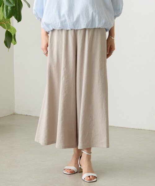 3/28(土)12:00追加予約開始予定。 お気に入り・再入荷リクエストをご登録してお待ちください ■アイテム リネン素材ならではの清涼感と揺れ感が魅力のキュロットパンツ。 パンツならではの安心感がありながら、見た目はスカートのような軽やかさ。 歩くたびにふんわりと広がるシルエットで、女性らしい印象を演出します。 ウエストはリブ仕様で、締め付け感が少なくリラックスしたはき心地。 同素材のトップスと合わせたセットアップスタイルもおすすめです。 サイズは2サイズ展開で、体型やスタイリングに合わせてお選びいただけます。 ベージュはリネン特有の節感があり、ナチュラルでややざらっとした風合い、 グレーはベージュに比べて節感が控えめで、少し滑らかな質感が特徴です。 >>リネンシリーズ ■素材・洗濯表示 素材 麻68% レーヨン29% ポリウレタン3% 別布:綿100% 洗濯表示:手洗い可 ※着用時・洗濯時は、必ず取扱い表示・タグをご確認の上、お取り扱い下さい。 ---------------------------------- 伸縮性:あり 光沢:なし 厚み:ふつう 透け感:なし 裏地:なし ポケット:あり ---------------------------------- 《お取り扱い上のご注意》 ・タンブル乾燥不可 《予約商品について》 ・サンプルの為、素材情報、洗濯表示については企画段階の情報を記載しております。公的機関での試験データ結果を受け、量産にあたり混率や洗濯方法の変更が発生する場合がございますので、ご了承くださいませ。 ・サンプルでの撮影、計測をしております。商品の仕様が一部変更になる場合がございます。 ・撮影サンプル品はブランドタグがついておりません。製品にはタグがつきますので、製品の表に縫い糸が見える場合がございます。 ・工場の生産の都合上、納期が変更になる場合がございます。検品や輸送の関係で、発送日が前後しますのでご了承ください。また、入荷状況により、お客様への発送が店頭販売より遅れる場合もございます。 ・店頭に陳列していた商品も含まれる場合がございます。 《商品画像について》 ご覧頂いている商品の写真につきましては、できるだけ実物の色に近くなるように努めておりますが お使いの環境(モニター、ブラウザ等)の違いにより、色の見え方が実物と若干異なる場合がございます。 予めご了承ください。 《ハートをタップして商品のお気に入り登録》 【ハートをタップ】登録カラーの商品の「残りわずか」「再入荷」「値下げ」通知を受け取ることができます。 【各ショップアプリにてブランドフォロー】 新商品などの入荷情報、最新のニュースやお得な情報を受け取ることができます。