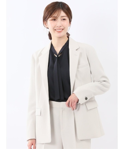 【ストレッチ UV ウォッシャブル】m.f.エディトリアル レディース トリアセライク リラクシング 1ボタンジャケット ライトグレー(セットアップ可能)