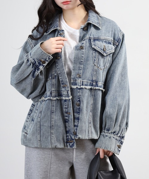 丸みのあるフォルムが印象的なデニムブルゾン ■デザイン丸みのあるシルエットが可愛いデニムジャケット。 裾にゴムと少量のギャザーを入れ、少し丸みのあるシルエットに仕上げています。 切替部分の裁ち切りデザインもアクセントに! 袖口はスラッシュあきで釦で調整が可能です。 ■素材 通年使いやすい10ozデニム/ツイルです。 (カーキ製品染め)ライトインディゴブルーとブルーはオーバーダイ加工。 ■ディティール 裾は伸縮性のあるゴムでギャザーを寄せ、丸みのあるコクーン調のデザインに仕上げています。 袖口にはスラッシュ開きがあり、ボタンで調節可能。 裁ち切りの切り替え部分がシンプルながらもポイントになり、絶妙な抜け感を演出しています。 ■シルエット 全体的に丸みを帯びたコクーンシルエットで、ふんわりと女性らしいフォルムが特徴。 裾のギャザーが自然なボリューム感をプラスし、やや短めの丈感で軽やかな印象を与えます。 タイトすぎずゆるすぎない絶妙なバランスです。 ■セットアップ 同素材デニムAFN5251とset upでカジュアルスタイルや甘めのスカートと合わせても◎ ■スタイリング 春や秋の軽やかな季節におすすめのスタイリングです。 同素材のデニムパンツを合わせたトータルデニムルックでカジュアルにまとめると、統一感が生まれて爽やかに仕上がります。 また、甘さを加えたい時はフレアスカートやプリーツスカートと組み合わせてメリハリをつけるのがおすすめです。 足元はスニーカーやローファーで抜け感を演出しつつ、シンプルなインナーでまとめることでブルゾンの丸みが引き立ちます。 春秋どちらの気候にもマッチするため、デイリーからお出かけまで幅広く活躍します。 『OKシーン』 ・公園・ショッピングモール・カフェ・図書館・映画館・美術館・デパート・友人宅・職場・学校・旅行先・駅・フェスティバル・アウトレット・テーマパーク・展覧会・観光地・スポーツ観戦・街中・プレゼント・ギフト 【hunch/ハンチ】 自分を甘やかす Bitterish clothes DRESS FOR MYSELF おしゃれに悩まないストレスフリーなスタイルを福岡から提案いたします。 フレンチシックカジュアルをベーストレンドをデイリーに取り入れた気軽なウェア。 みんなの ""ちょうどいい"" 服づくりを目指しています。 ごきげんな自分に出会える予感。 kigocochi iicchan ne A-ne ================== 【お買いものをお楽しみいただく為の方法】 ================== ★商品のお気に入り登録★ ・再入荷通知、ラスト1点通知、セール通知が届きます。 ★ブランドのお気に入り登録★ ・新商品や再入荷など、お得な情報を受け取れます。 denim/jacket/women's/デニムジャケット/レディースジャケット/ツイルジャケット/春アウター/秋アウター/冬アウター/丸みシルエット/裾ゴム/切替デザイン/スラッシュ袖/カジュアルジャケット/ライトブルー/ブルー/カーキ/女性用ジャケット/切り替え柄スカート/春服/春物/秋服/秋物/冬服/冬物