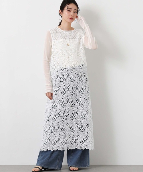 春らしい総レースが魅力的なワンピース。 甘すぎないエレガントな柄行きで、大人の女性が着やすいデザイン。 前後2WAY着用可能なので、ワンピースとして着たり、ジレのようにレイヤードしてみたりと着方次第で何パターンもの着こなしが可能。 ロングのIラインシルエットでスタイルアップ効果も期待できます。 【LUSTEEK /ラスティーク】 Gready Brilliant INブランド。 いまの空気を敏感に感じ取りながらも、自分らしくバランス感を大切にするしなやかな大人の女性に向けて、新しいフェミニティを提案します。 ************************** 透け感:透ける 伸縮性:あり 生地の厚さ:薄い 裏地:なし ポケット:なし ************************** ※商品画像は、光の当たり具合や使用しているパソコンのモニターやスマートフォン等の設定により、現物と画像の色味が若干異なる場合もございます。予めご了承ください。 【 お買い物をもっと楽しんでいただく為に 】 ▼商品のお気に入り登録▼ 完売カラーの再入荷や、ラスト1点、セールの通知をお知らせします。 割引クーポンの発行などお得な情報も! ▼ブランドのお気に入り登録▼ 新商品や再入荷など、いち早くグレディブリリアンのお得な情報を受け取ることができます! 【Gready Brilliant】 「ほどよい存在感」を大切にする大人の女性のためのセレクトショップ。