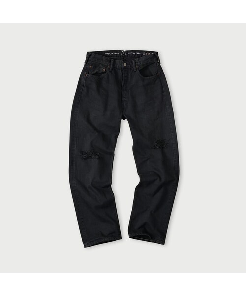 奇跡のブラックコシとハリをしっかりと感じるジンバブエコットンでざっくりと織られた再び6.5は強いムラを感じるでこぼこのデニム。線ではなく点を意識した力強いステッチワークがアクセントです。匠の手によって再び加工し、生まれかわった奇跡のブラックデニムです。裏側に押されたブル丸力士のスタンプは本物の重力織機で織られたセルビッチデニムの証。革パッチを外した痕のアタリ染まった草木染のR刺繍もアクセントです。着こなしの特集はこちらこちらは4.5年保証の対象製品です。4.5年保証についてはこちら空比古比女の一覧はこちら