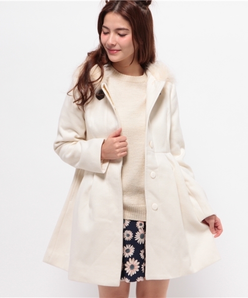 【one after another NICE CLAUP】(ワンアフターアナザーナイスクラップ) 女性らしい丸みのあるフレアシルエットがフェミニンな印象のダッフルコート。前立てのトグル使いとフードのファー使いが更に可愛らしい印象にしてくれます。ワンピースや甘めコーディネートにぴったりマッチするオススメの1枚です。 ショップへお問い合わせの際は下記品番をお伝え下さい。品番:121200280