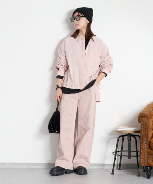 【イージーケア】フロントタックドロストシャツ 昨年大ヒットの“フロントだけドロスト”のシャツを、2026SS仕様にアップデート。 シワになりにくいイージーケア素材 × シルエット自在のドロストデザインで、着るだけで旬顔が完成する主役級ブラウス。 ◇Point◇ ・シワになりにくい表面感のある素材でお手入れ簡単 ・フロントドロストでシルエットを自由にアレンジ ・ヒップが隠れるバックロング丈で体型カバー ・前後差のある着丈でスタイルアップ見え ・袖まくりがしやすいゴムカフス仕様 フロント部分のドローコードを絞れば、旬なタックイン風スタイルが即完成。 丸みのあるバルーンシルエットにも、ふわっと広がるフレアシルエットにもアレンジ可能です。 バックスタイルはラウンドヘム仕様でヒップまでしっかりカバー。サイドスリットはボタンで開閉可能です。 レイヤードしやすい丈感で、横から見ても抜け感のあるバランスに。 程よいワークテイストがありつつ、きれいめにも着られる絶妙デザインです。 1枚で様々なシルエットを楽しめる、着回し力抜群のアップデートシャツ。 今季のワードローブにぜひ加えてみてください。 ◇Material◇ ・やや薄手で軽やかな着心地 ・シボ感&ハリ感のあるイージーケア素材 ・家庭洗濯OK ロングシーズン対応(春・夏・秋)。 身幅はゆったりめですが、ドロストで調整できるため低身長〜高身長までバランスよく着用可能です。 ◇Coordinate◇ ・リラックスパンツ合わせで大人カジュアルに ・Iラインスカートでモードな印象に ・ワンピースの上から羽織ってレイヤードスタイルに ・ロゴTやタートルとの重ね着も◎ オフィスカジュアル、通勤、休日のお出かけ、旅行やレジャーにも活躍。 “合わせるボトムを選ばない”万能ブラウス。 ワーク・モード・カジュアル、どのテイストにも自然に馴染みます。 ※照明や天候により実際の色味と異なって見える場合がございます。ご了承くださいませ。 【キーワード】 #Y2K#20代#30代#40代#50代#抜け感#リラックス#オケージョン#ビジネスカジュアル#羽織