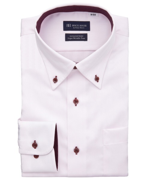◆綿100% 超形態安定シャツ◆ 綿100%なのにお手入れ簡単 メンズ超形態安定シャツ 通常の形態安定加工商品よりもさらに 高い形態安定性(W&W性)を取得。 着心地の良さと高い機能性、両方を 追及した価値ある逸品をお届けします。 台衿とカフス裏の別布使いに色ボタンを 取り入れ、アクセントを添えた一枚は 個性ある衿元を演出してくれます。 衿がキレイなロールを描いてくれる ボタンダウン衿はタイドアップの スタイリングもおすすめです。 ■仕様 カフリンクス使用可能な兼用カフス (アジャストボタン) 中丸カフス 胸ポケット(左胸)付き(ホームベース型) 背タック・背ダーツなし 前立:裏前立仕様 台衿内側・カフス裏側:別布仕様 ※別布を含む濃色生地は色落ち・移染が 発生する場合があるため、お洗濯時は 衣類の組合わせにご注意ください。 ※サイズ[首回り42cm]のお届け商品の縫い付けタグはLL表記、 サイズ[首回り43cm]のお届け商品の縫い付けタグはXL表記でございます。 ZOZOTOWNの検索サイズと異なりますのでご注意ください。 【BRICK HOUSE by Tokyo Shirts / ブリックハウス バイ トウキョウシャツ】業界トップ水準を誇るノーアイロンの形態安定加工は自宅で洗濯可能でお手入れ簡単!高度な縫製技術を用いた高付加価値シャツでありながら選ぶことを気軽に楽しめます。ベーシックから多様なデザインまで幅広いバリエーションで豊富なサイズ展開で、ディテールの隅々にまで織り込んで一枚一枚丁寧に仕立てられたシャツです。