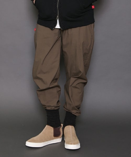 かつ裾をリブで締めることによってブーツインでもスニーカーでも締まる、新しいスタイルのジョガーパンツともワークパンツとも取れるアイテムです。何度も試行錯誤し作り上げられた自信作です。