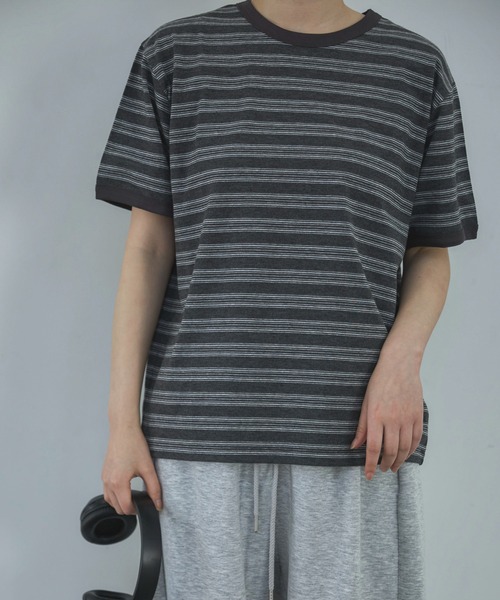 ◆Detail ルーズシルエットでリラクシーな着心地のカジュアルTシャツ。 旬なマルチボーダー柄でカジュアル感も程よく控えめなシックなカラーリング展開が着合わせやすさ抜群◎ 袖丈もやや長めのデザインで二の腕もカバーしてくれます。 王道にデニム合わせでカジュアルスタイルはもちろん、スラックスやスカート、ジャケット等と合わせキレイめに着こなすのも素敵です。 ◆Fabric --------------------------------- 透け感:なし 伸縮性:あり 光沢:なし 生地の厚さ:★★★☆☆ --------------------------------- ※汗や水、摩擦により他のものに色移りすることがありますのでご注意ください。濃色製品は色移りすることがありますので、他の物と分けて洗濯してください。 ※生産時期によりサイズや質感・色味に若干の個体差がみられる場合がございます。 ※商品画像は、光の当たり具合やパソコンなどの閲覧環境により、実際の色味と異なって見える場合がございます。 予めご了承ください。 ※着用、お取り扱いの際は、商品についている品質表示とアテンションタグを必ずご確認ください。 ◆Information 欲しいitemをお気に入り登録(♡マークをclick) ・お買いのがし対策…完売itemの再入荷やラスト1点の情報をお知らせ ・欲しいitemをお得にget…pricedownになったらいち早くお知らせ ・スムーズ検索…ZOZOのお気に入りアイテムページで簡単checkできるから、再検索不要♪