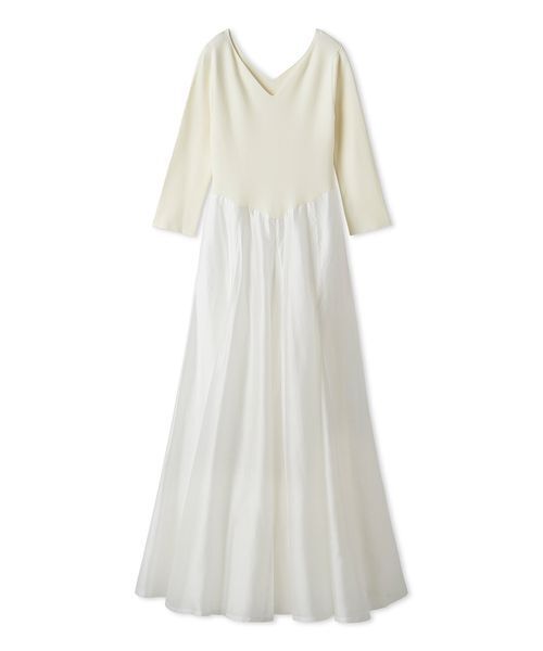 【デコルテを美しく見せるハートネックニットワンピース】【Design/Styling】デコルテを美しく見せるハートネックニットと、分量感たっぷりのオーガンジースカートをドッキング。スカートはマチに高低差をつけ、動きのある立体的なシルエットに仕上げました。寒い時期から春まで長く楽しめる一着です。【Fabric】ニット部分は程よい厚みで着心地◎。スカート部分は軽やかで艶感のあるテンセルオーガンジー素材を使用。アイボリー、ピンクベージュ、ミックスの3色展開です。※照明の関係により、実際よりも色味が違って見える場合があります。またパソコン・スマートフォンなどの環境により、若干製品と画像のカラーが異なる場合もございます。予めご了承ください。商品の色味は、商品単品画像をご参照下さい。 ※商品画像はサンプルのため、色味やサイズ等の仕様に変更がある場合がございますので、予めご了承ください。