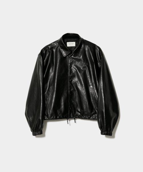 【デザインの特徴】 ・リラックスした肩のフォルムが特徴的なコーチジャケット ・セットインスリーブ ・四角いシルエットから生まれるゆったりとしたパターンメイキング ・リラックスフィット ・左胸に「B.PPL」のエンボスロゴ ・ロゴ入りのドット釦開き ・腰上丈 【素材のこだわり】 ・薄さがありながら、適度なハリを持たせた羊革 ・行程中のアイロン等の加工を調整し通常の薄い革では現れない 革本来のシボ感を残した表情が特徴 ・ハリがありながらしっとりとした肌触り