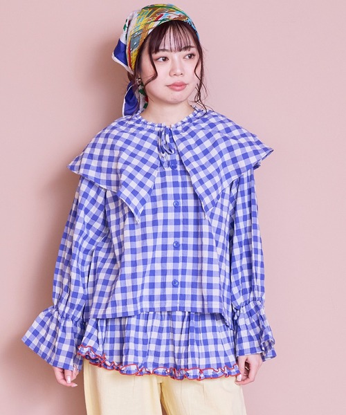 大きな襟が主役♪ ギンガムで春のかわいさをぎゅっと♡ ■デザイン 印象的なビッグカラーが目を惹くギンガムチェックブラウスです。 襟ぐりのリボンとフロントボタンで、きちんと感とかわいさを両立しました。 袖口はギャザーを入れてふんわり立体的に。 1枚でコーデが決まる主役トップスです。 ■スタイリング デニムやチノパンに合わせるだけで、ガーリーカジュアルにまとまります。 ジャンパースカートやサロペットのインナーに入れると、ビッグカラーが映えて写真映えも◎。 前を開けて羽織りとして使うのもおすすめです。 キッズサイズもご用意していますので、 親子でリンクコーデもお楽しみいただけます! ■関連商品 Kids/0040561003 Otona/0040561004 ■関連商品(同シリーズ) ギンガムビッグカラーブラウス/0040561004 ギンガムラウンドフリルロングパンツ/0040161005 ■生地感 さらりとした肌触りの軽やかな布帛生地です。 程よいハリがあり、襟や袖のシルエットがきれいに出ます。 ロングシーズン着回しやすい生地感です。 ++++++++++++++++++++++++ 透け感:少しあり 伸縮:なし 厚み:やや薄手 ++++++++++++++++++++++++ ※モデルが着用している画像は、照明や日光などの撮影時の環境により実物と異なる色味になる場合がございます。 商品単体の平置き画像を実物に近いお色味になるよう努めておりますので、お色味のご確認は平置き画像をご参照くださいませ。 ※お使いのモニター環境によっても実物のお色味と異なって見える場合がございます。予めご理解の程よろしくお願いいたします。 ハートマークをポチッ! 気になる商品はお気に入り登録をお忘れなく! 商品のお気に入り登録をすると... [再入荷][残り1点][セール情報]を受け取れます。 MARKEY'Sをお気に入り登録すると... [新商品][再入荷]の情報をいち早く受け取れます。
