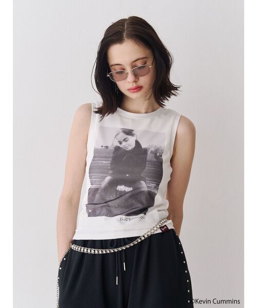 数多くのミュージシャンを撮りつづけた、音楽写真家Kevin Cummins(ケヴィン・カミンズ)とのコラボレーションアイテムが登場。 <Kevin Cummins> 1953年、マンチェスター生まれ。 当時急成長をとげたマンチェスターのパンク・シーンに深くかかわりを持った伝説のフォトグラファー。 "Joy Division"や"New Order"といった伝説のロック・アーティストのそのままの姿をリアルに撮り続け、その頃からドキュメンタリー・フォトグラファーとしての評価を得る。 その後、UKのロック・ウィークリー紙『NME』にて10年間チーフ・フォトグラファーを務めた。 【ポイント】 90年代を象徴するアーティスト、Bj?rkのポートレートを大胆にプリントしたPos tokyoだけのスペシャルタンクトップ。 フォトグラファー Kevin Commins が切り取った印象的な一瞬を、チュール素材の上にプリントすることで、独特の透明感と奥行きのある表情を実現しました。 身頃は二枚仕立て。内側はソフトなカットソー素材、外側はシアーなチュールを重ねることで、フォトが浮き上がるような立体的なデザインに。 透け感のあるチュールがヴィンテージライクでありながら、どこか未来的なムードも漂わせます。 コンパクトな丈感とフィット感のあるシルエットで、ボリュームボトムとの相性抜群。 デニムやカーゴパンツに合わせてストリートに、スカートに合わせてフェミニンにも着こなせる万能な一枚です。 カラーはホワイト・レッド・ブラウンの3色展開。それぞれプリントの雰囲気が異なり、スタイリングのアクセントになる仕上がりです。 【スタイリング】 ワイドデニムやカーゴパンツで90sストリートスタイル。 シースルーシャツやジャケットのインナー使いやスカートに合わせてガーリー&モードなMIXスタイルに。 ※着用画像はフラッシュの加減で実際の製品と色味等が異なる場合がございますので、生地のズームアップ画像をご確認ください。 ※ご利用の端末画面の設定により実際の商品と色味が異なる場合がございます。 ※正しいサイズはアイテムサイズ表をご確認ください。 ※商品のお取り扱いについては、脇についている洗濯ネーム類をご確認下さい。
