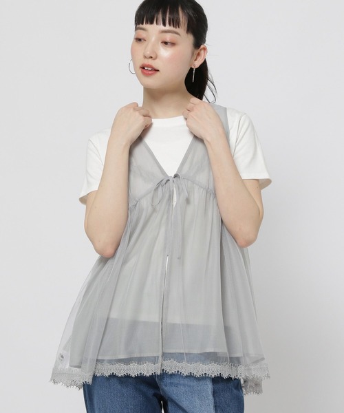贅沢レースと旬のメッシュ。 ダブルフェイスで活躍するレイヤードアイテム ■素材特性 上品な落ち感のセルロース混素材と、トレンド感のあるシアーなメッシュ素材を使用しています。 ■デザイン 繊細で上品な落ち感が魅力の2WAYリバーシブルベスト。 フロントの華奢なリボンを結べばフェミニンに、外してジレのように羽織れば程よくカジュアルな抜け感を演出してくれます。 レースやドット柄をアクセントにすることで、いつものコーディネートに立体感と遊び心をプラスしてくれる今季のマストアイテムです! ■おすすめスタイリング カジュアルなボーダーカットソー×デニムの鉄板コンビに、オフホワイトのメッシュ面を表にしてレイヤードさせた大人のこなれカジュアルコーデが◎ スウェットやTシャツの下からレースをチラ見せさせるトレンドのレイヤードスタイルもおすすめです! ※サンプルにて撮影をしておりますので、実際の商品とは仕様や加工・サイズ等が若干異なる場合がございます。 ※屋外の光や照明の当たり具合で、実物と色味が異なって見える場合がございます。詳細画像の色味をご確認ください。 なお、商品の色や質感を出来るだけ忠実に再現するよう心掛けておりますが、パソコンなどの環境により、実物と若干異なる場合がございます。 ※写真を許可無くコピー・転用することは固くお断りします。 ※ご注文いただいた予約商品のお届け時期の確認は、注文履歴ページより行えます。