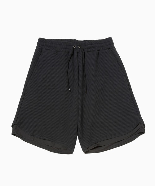 【Item Description】SOLOTEX® ワッフルを使用したイージーショーツ。裏地付きの二重構造になっており、内側には透湿撥水性の高いポリエステルタフタを使用。ノンラミネート加工により汗、水分を内部から外へ素早く放出し、ムレを抑え快適に保つ。ウエストはドローコード仕様。右腰にDカン付き。【Material】表側にはテイジンの開発したSolotexを使用した変形ワッフル素材を採用。コイル形状でストレッチ性、キックバック性に優れ、吸水速乾性も併せ持つ。【Information】・ブランドのお気に入り登録完売中のカラーやサイズの再入荷、ラスト1点の通知をお届けします。・商品の「お気に入り」登録新作の公開や再入荷など、最新の情報を受け取ることができます。ぜひ、ご活用ください。─────────────────────────────────────meanswhileMore than just a garment, clothes are a tool.Ancillary to daily activity, the purpose of design is to enhance the functionality of these tools.As these tools transform and adapt with wear, they in turn personalize each individual's style.It is this style that is the essence of fashion.日常着である以上、服は衣装ではなく道具である。人の活動に付随するのが道具であり、デザインとはその道具がより機能するためにある。道具が日常に馴染むたび、使い手のスタイルが築かれる。そのスタイルこそが、ファッションとしてあるべきものである。─────────────────────────────────────
