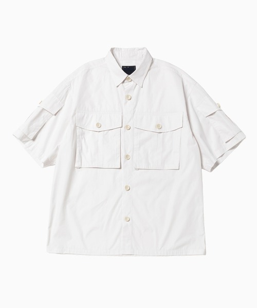 【Item Description】 3色の色糸で無地を表現したトリニティーシャンブレー生地を使用したサファリシャツ。 ボリュームを持たせた胸と袖のポケットは、タックも大きめに取る事で丸みのあるシルエットを形成する。 ポケットとしての機能も持たせたまま、見た目のバランスにも影響している。 【Material】 タテに2色、ヨコに1色、計3色の糸を使用して織ったこの生地は、ターゲットとする色を設定したのち、その色に含まれる要素を1Base(基礎となる色目)、2Hi-light(最も明るい要素)、3Noise(違和感のある雑味)の3要素に分解して抽出。 それぞれの要素を強調したあらたな色を作りそれを再度、織りで掛け合わせることで、単純な後染めでは決して出せない陰影や奥行きに富んだ無地の色目を作り出している。 快適な服地としての糸質・番手・打ち込み本数のバランス、そして洗濯後の風合いやシワの入り方に至るまで様々な検証の末にたどり着いた黄金比によるシャツ地。 【Information】 ・ブランドのお気に入り登録 完売中のカラーやサイズの再入荷、ラスト1点の通知をお届けします。 ・商品の「お気に入り」登録 新作の公開や再入荷など、最新の情報を受け取ることができます。 ぜひ、ご活用ください。 ───────────────────────────────────── meanswhile More than just a garment, clothes are a tool. Ancillary to daily activity, the purpose of design is to enhance the functionality of these tools. As these tools transform and adapt with wear, they in turn personalize each individual's style. It is this style that is the essence of fashion. 日常着である以上、服は衣装ではなく道具である。 人の活動に付随するのが道具であり、デザインとはその道具がより機能するためにある。 道具が日常に馴染むたび、使い手のスタイルが築かれる。 そのスタイルこそが、ファッションとしてあるべきものである。 ─────────────────────────────────────