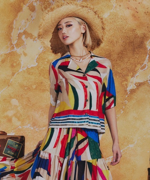 存在感のあるカラフルな柄が目を惹くシャツ。とろみのある美しい落ち感とドレープ性、しなやかな肌触りと上品な光沢を併せ持つレーヨン素材を使用し、エレガントな雰囲気に仕上げました。オープンカラー仕様で自然なこなれ感を演出。同素材のスカート(型番:0202491261)と合わせれば、個性が際立つワンピース風のスタイリングが楽しめます。 ※商品画像はサンプルのため、デザイン、素材(混率等)、色味やサイズ等の仕様に変更がある場合がございますので、予めご了承ください。 【お買い物を楽しみいただくためには】 ◆商品お気に入り登録 完売カラーの再入荷通知や、ラスト1点通知、セールの通知など受け取ることができます。 ◆ブランドお気に入り登録 新商品や再入荷など、いち早くブランドのお得な情報を受け取ることができます。