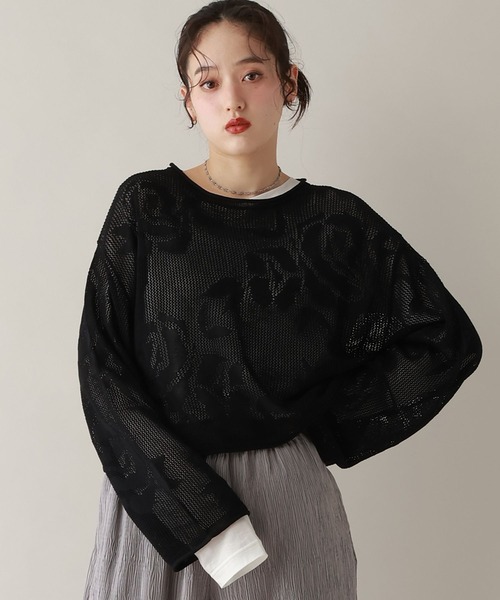 フラワーモチーフが目を惹く一着。■おすすめの着こなし☆パンツスタイルには・・・ニットタンクやキャミなどをインナーに着込み、スラックスと合わせれば大人見えスタイルに。デニムと合わせて、カジュアルに着こなすのもおすすめです。☆スカートスタイルには・・・フレアスカートなどの女性らしいアイテムと合わせる、ほんのり甘めな着こなしが◎Iラインスカートなどタイトなアイテムとも好相性なので、きれいめスタイルも叶います。ーーー■ポイント大好評の透かしニットが今年も登場。粗目の透かし編みデザインなので、抜け感があり女性らしい印象に。フラワーモチーフが全面に散りばめられていて、シンプルなスタイリングも華やかになります。身幅にゆとりのあるシルエットなので、着るだけで体型カバー可能なのも嬉しいポイント◎ボトムスを選ばずに着れる優秀アイテムです。■素材柔らかく、肌触りの良いレーヨンとナイロンの混紡素材を使用。着合わせ次第で、ロングシーズンお使いいただけること間違いなしです。
