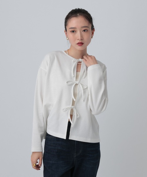 リボンのディティールが可愛らしいカーディガン【デザイン】柔らかいテレコリブ素材で、前身頃のリボンがポイントのカットカーディガンです。まだまだ肌寒い今の季節に、春コーデのプラス1点としておすすめで、活躍すること間違いなし!【スタイリング】・デニムアイテムと合わせてカジュアルフェミニンなスタイリングがおすすめです。---------------------------------------------------【気になる商品はお気に入り登録がおすすめ!】・在庫残りわずか・再入荷・セールの情報などの通知を受け取ることができます。気になる商品は♡をクリックして、「お気に入り登録」しましょう!【ショップ・ブランドのお気に入り登録も!】新商品や再入荷、セール、クーポンの配布など、いち早くお得な情報を受け取ることができます。---------------------------------------------------