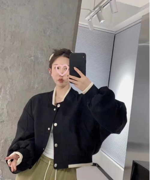 クロップド スタジャン ブルゾンが登場♪ 韓国発のトレンドを取り入れた、クロップド丈のスタジャンです。 最大の特徴は、ふんわりとしたボリュームスリーブ。肩元から袖にかけての美しいシルエットが肩幅をカバーし、頭身比を良くする効果があります。クロップドレングスがウエストラインを明確にし、自然と脚を長く見せるスタイルアップ効果を発揮。 襟元と袖口、裾にはコントラストの配色リブを採用し、デザインのアクセントになっています。軽量で柔らかい素材を採用しており、ジャケットとしてはもちろん、カーディガンのように羽織るだけでもおしゃれに決まります。 無地のブラックカラーはインナー選びに迷わず、春のデイリーコーデの定番アイテムとして長く愛用できます。 ※店頭及び屋外での撮影画像は、光の当たり具合で色味が違って見える場合があります。またご覧いただきますモニターや使用環境により実際の商品と多少色味が異なって表示される場合がございます。 予めご了承をお願いいたします。 ★商品のお気に入り登録→【カートに入れる】右側の♡をクリック 完売カラーの再入荷通知や、ラスト1点の通知、セールの通知も受け取ることができます。 ★ブランドのお気に入り登録→ブランドタグのページからお気に入りをクリック 新作商品や再入荷などブランドのお得な情報を受け取ることができます。 ※ご注文いただいた予約商品のお届け時期の確認は、注文履歴ページより行えます。 ※他のキャンペーンにより、期間中に価格が変動する場合がございます。 ※セールは予告なく終了させていただく場合がございます。