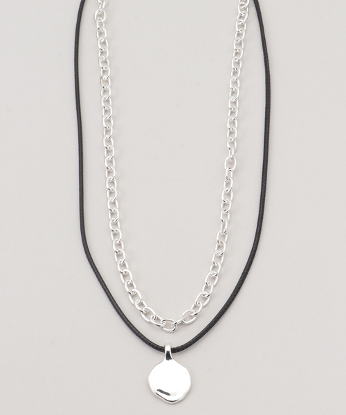 異素材ミックスが魅力の2連デザインネックレス。 存在感のあるメタルチェーンとしなやかな紐を組み合わせたレイヤード風のデザインが、スタイリングにモードなニュアンスを添えます。紐にはニュアンス感のあるメタルトップがあしらわれ、動くたびにさりげなく輝きをプラスしてくれます。 素材:真鍮、鉄、合金、ポリエステル、ロジウムめっき ※取り扱いについては、商品についている品質表示でご確認ください。 ※こちらの商品は、B.C STOCKでの取り扱いになります。 直接店舗へお問い合わせの際はB.C STOCK店舗へお願い致します。 ※照明の関係により、実際よりも色味が違って見える場合があります。またパソコン・スマートフォンなどの環境により、若干製品と画像のカラーが異なる場合もございます。 ※商品の色味は、商品アップ画像をご参照ください。
