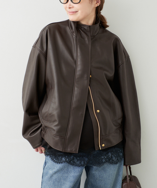 EVERYDAY I LIKE.のブラウンレザージャケット。柔らかいラムレザーを使用した、シックなブラウンカラーが雰囲気のある1着。高級感あるエクセラゴールドファスナーがタフなレザージャケットを華やかにしてくれます。ゆとりを持たせたサイズ感と程よいワイドスリーブが女性らしく、モダンなムードに。軽い着心地も魅力のレザージャケットです。※取り扱いについては、商品についている取扱表示にてご確認下さい。※照明の関係により、実際よりも色味が違って見える場合があります。またパソコン・スマートフォンなどの環境により、若干製品と画像のカラーが異なる場合もございます。※商品の色味は、商品アップ画像をご参照ください。※こちらの商品はお一人様1カラー・1サイズにつき1点までの購入とさせていただきます。本体:ドライクリーニング