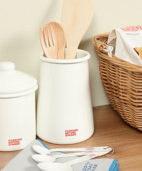 《PUDDING BEFORE DINNER》揃えて使いたい琺瑯シリーズ 琺瑯のキレイな白色と口元の赤のラインがアクセントになるツールスタンド。 菜箸やよく使うキッチンツールを立てて収納するのにとっても便利。 PUDDING BEFORE DINNERの琺瑯シリーズで揃えていただくのもおすすめです。 ■容量:1.1L ■電子レンジ、食洗機、オーブン:不可 ■原産国:中国 ※本製品は一点ずつ仕上がりに個体差がございます。 ※手作業でホーロー加工をしているため色ムラや傷が生じます。 ーーー PUDDING BEFORE DINNER ツールスタンド ほうろう 琺瑯 ーーー